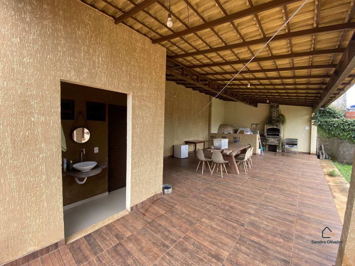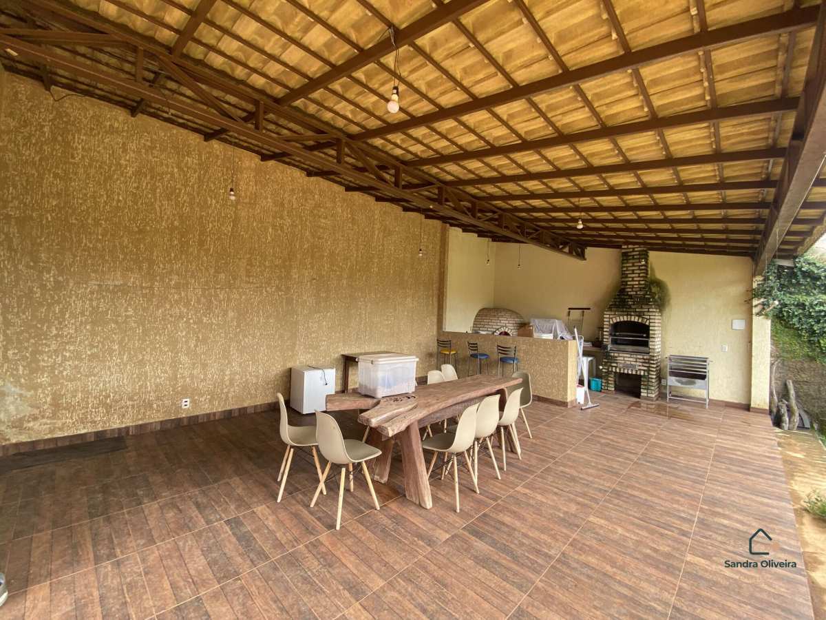Possui uma completa área de churrasqueira com forno a lenha, bancadas e lavabo feminino e masculino com toucador, além de canil e um quartinho para guardar pertences.