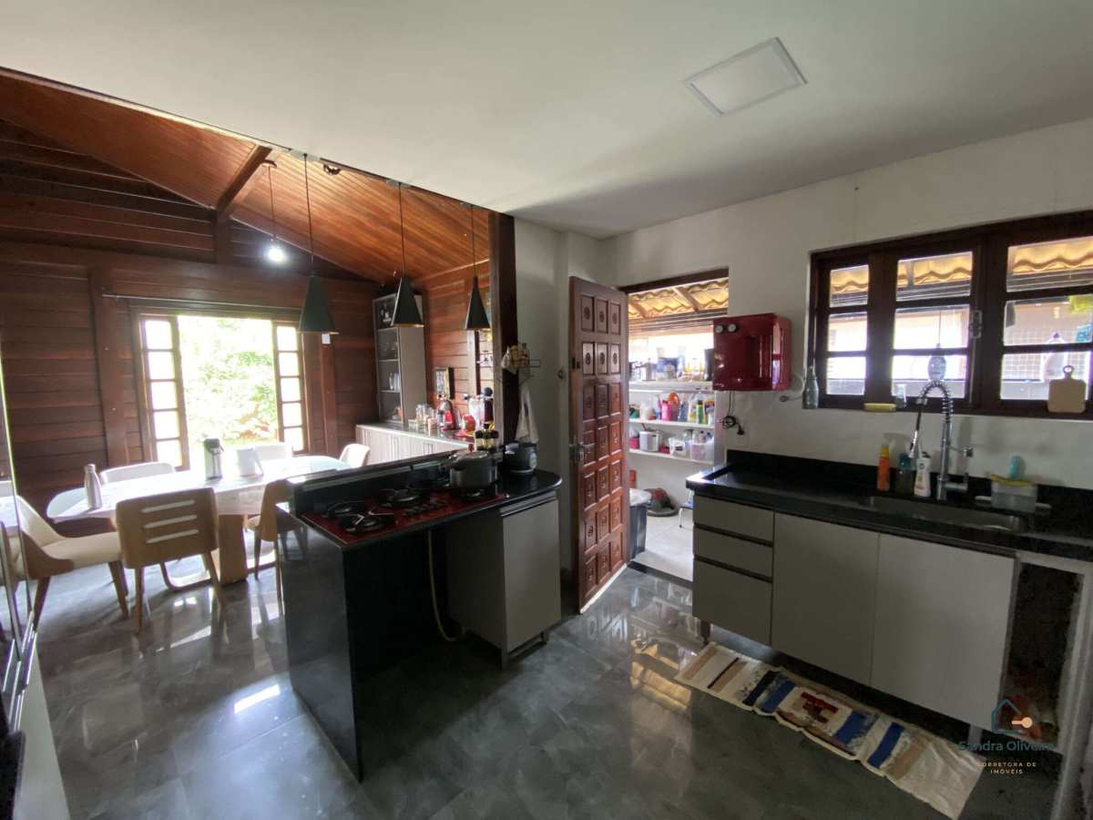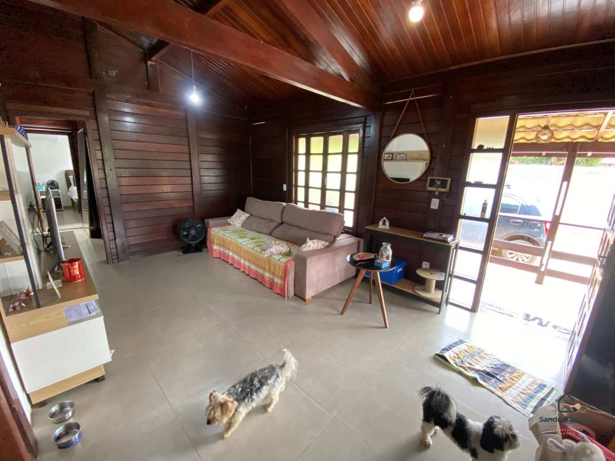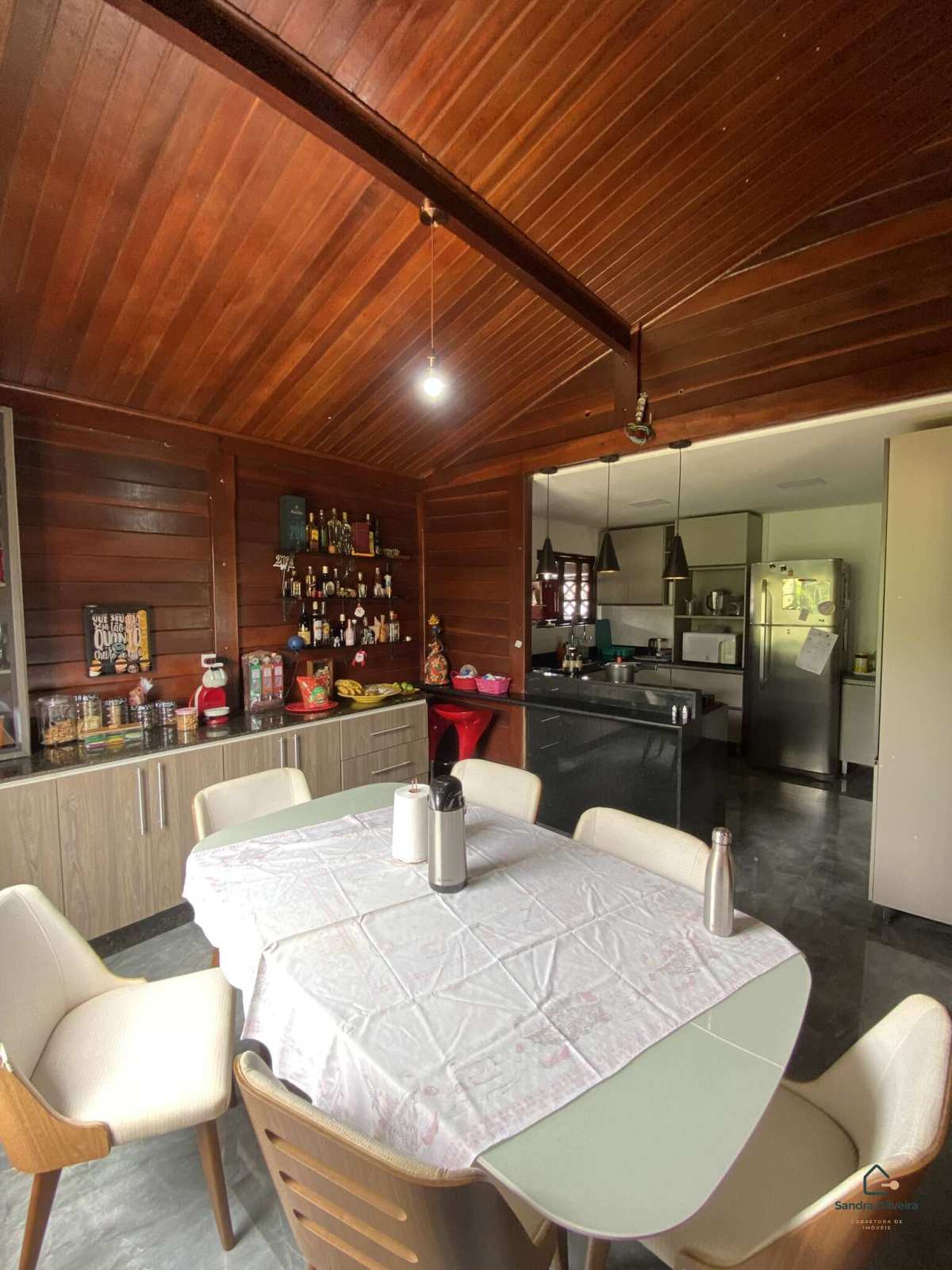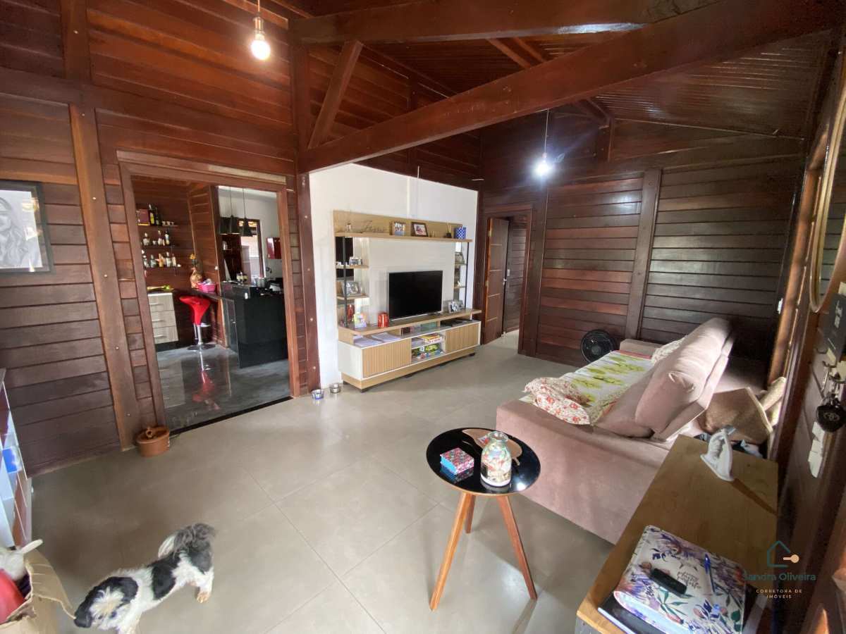 A estrutura da casa é em madeira massaranduba envernizada, material de alta resistência, excelente durabilidade, ótima estabilidade estrutural e conforto térmico natural, além de proporcionar um acabamento nobre e acolhedor ao imóvel.